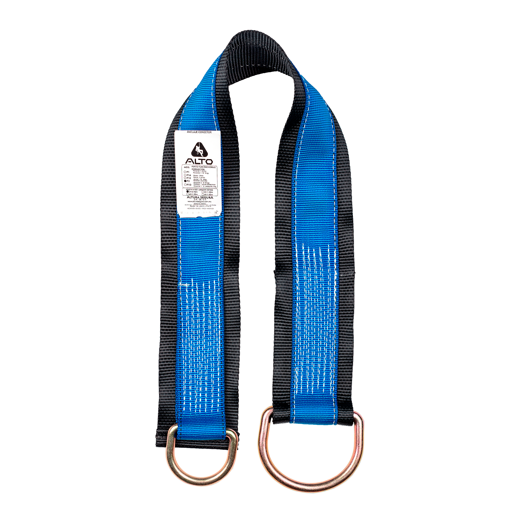 Elemento de anclaje construido con cinta flexible, en uno de sus extremos cuenta con un anillo tipo metalico «»D»». Este producto sirve como punto de anclaje, y no forma parte de la estructura que soporta al trabajador. La conexión de sealiza uniendo el gancho de cable de seguridad al anillo»»D»» que ha sido anudado previamente a alguna sección de la estructura, en la cual se configura en riesgo de caída.