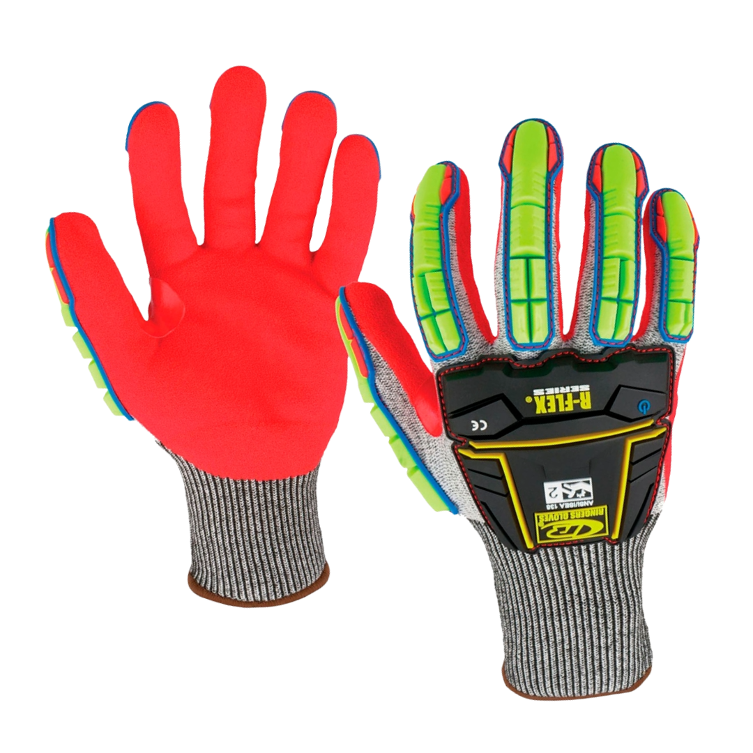 Guantes de impacto resistentes a los cortes, con un diseño de TPR (caucho termoplástico) y un forro de punto para una mayor comodidad.
