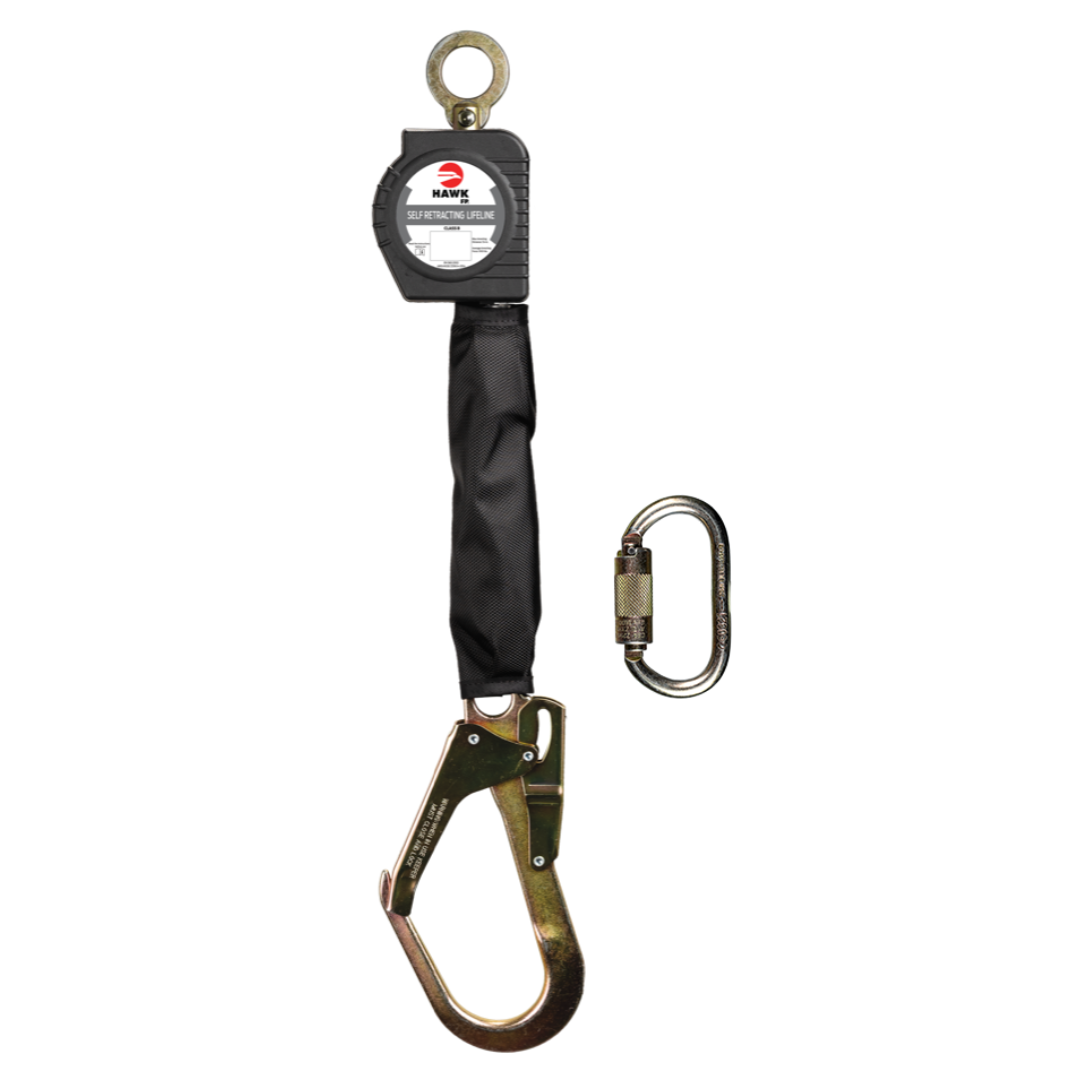 Equipo portátil del sistema contra caídas que provee línea unade seguridad al usuario para desplazarse en un área determinada. A un evento de caída la linea auto retráctill momento de, activa el mecanismo automático de freno la cual detiene al trabajador.